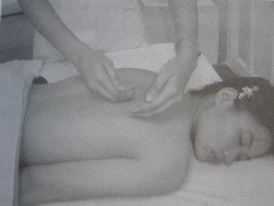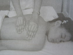 6. การนวดเริ่มจากการใช้ฝ่ามือทั้งสองข้างลูบกล้ามเนื้อ (Stroking) โดยให้น้ำหนักการลูบขึ้นมากกว่าการลูบลงและเมื่อนวดหลังเสร็จแล้วให้ลูบ กล้ามเนื้อ (Stroking) ซ้ำอีกครั้ง