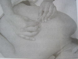 - วิธีที่ 2 ใช้ปลายนิ้วหัวแม่มือ นิ้วชี้และนิ้วกลางทั้งสองมือ กดและบีบข้างกระดูกสันหลังเข้าหากันและคลายออกทำซ้ำประมาณ 5-6 ครั้ง
